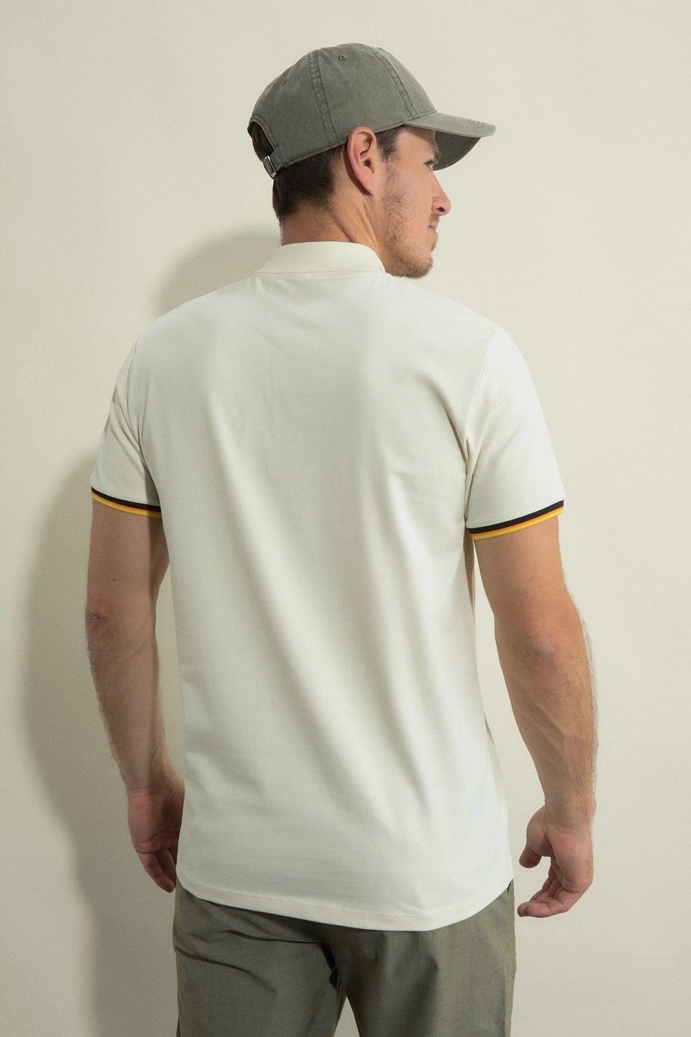 Affirmez votre style avec le Polo GRACHT de chez BENSON & CHERRY, un modèle moderne pensé pour les hommes qui veulent conjuguer élégance discrète et aisance au quotidien. Disponible en écru et kaki, ce polo à manches courtes est confectionné en jersey stretch (97% coton, 3% élasthanne), garantissant une liberté de mouvement optimale et un toucher doux.